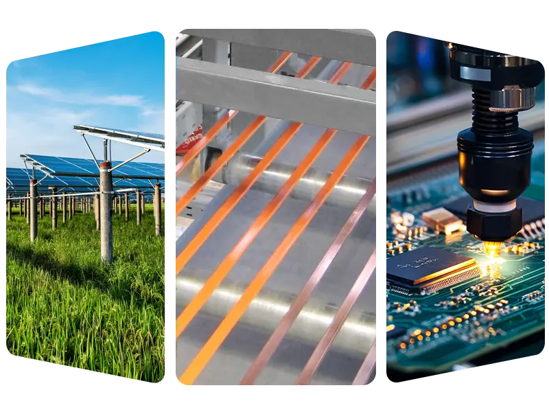 • Bidang fotovoltaik: produksi massal pita las fotovoltaik dan busbar untuk membantu komponen menghantarkan listrik secara efisien.